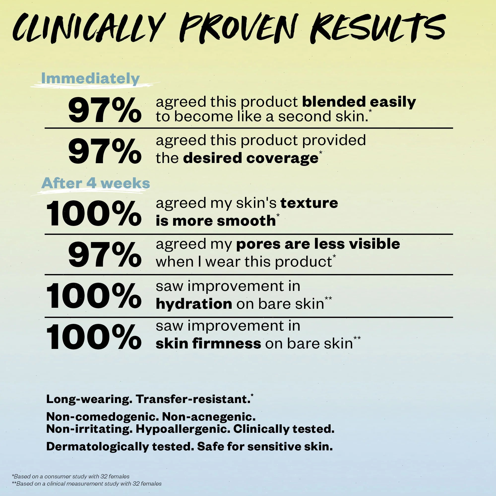 A medium coverage SPF treatment foundation with a natural, dreamy finish that instantly blends like a second skin to blur, visibly smooth texture + minimize pores.